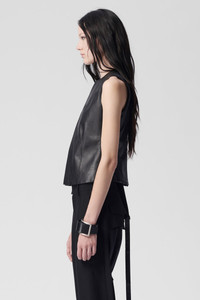 Women's Yael Fitted Vest - Black - Plongée Nappa - Round Neck - Concealed Button Closure - Sleeveless - Back Zipped Split - Fitted - 100% Lambskin - Made In Italy