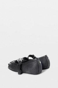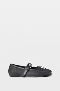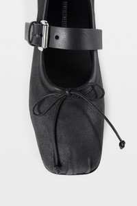 Zoey Ballerinas - Black - Denim - Pleated Square Toe - Back Signature Rivet - Front Rope Bow - Buckled Ankle Belt Strap - Leather Sole - 100% Cotton - Made in Italy Ann Demeulemeester shoes embody the essence of luxury and comfort. The generously wide fit is a design choice aimed at ensuring a comfortable wear. For those who prefer a snugger fit, we recommend using an insole. Crafted from the highest quality leather, it is natural for the shoes to feel stiff initially. By wearing and walking in them, they will perfectly mold to the shape of your feet, offering unparalleled comfort. The fit of this item is regular comfort. Consider to purchase your usual size. Care To maintain the beauty and integrity of your purchase, we recommend treating it with care. Simple maintenance practices, such as gentle washing and proper storage, can effectively preserve the longevity of your favorites. We encourage you to refer to the care instructions included with each item, designed to help you keep your purchase in top condition. Design Our dedication to excellence extends beyond materials; it encompasses the artistry and craftsmanship illustrated in every piece we create.