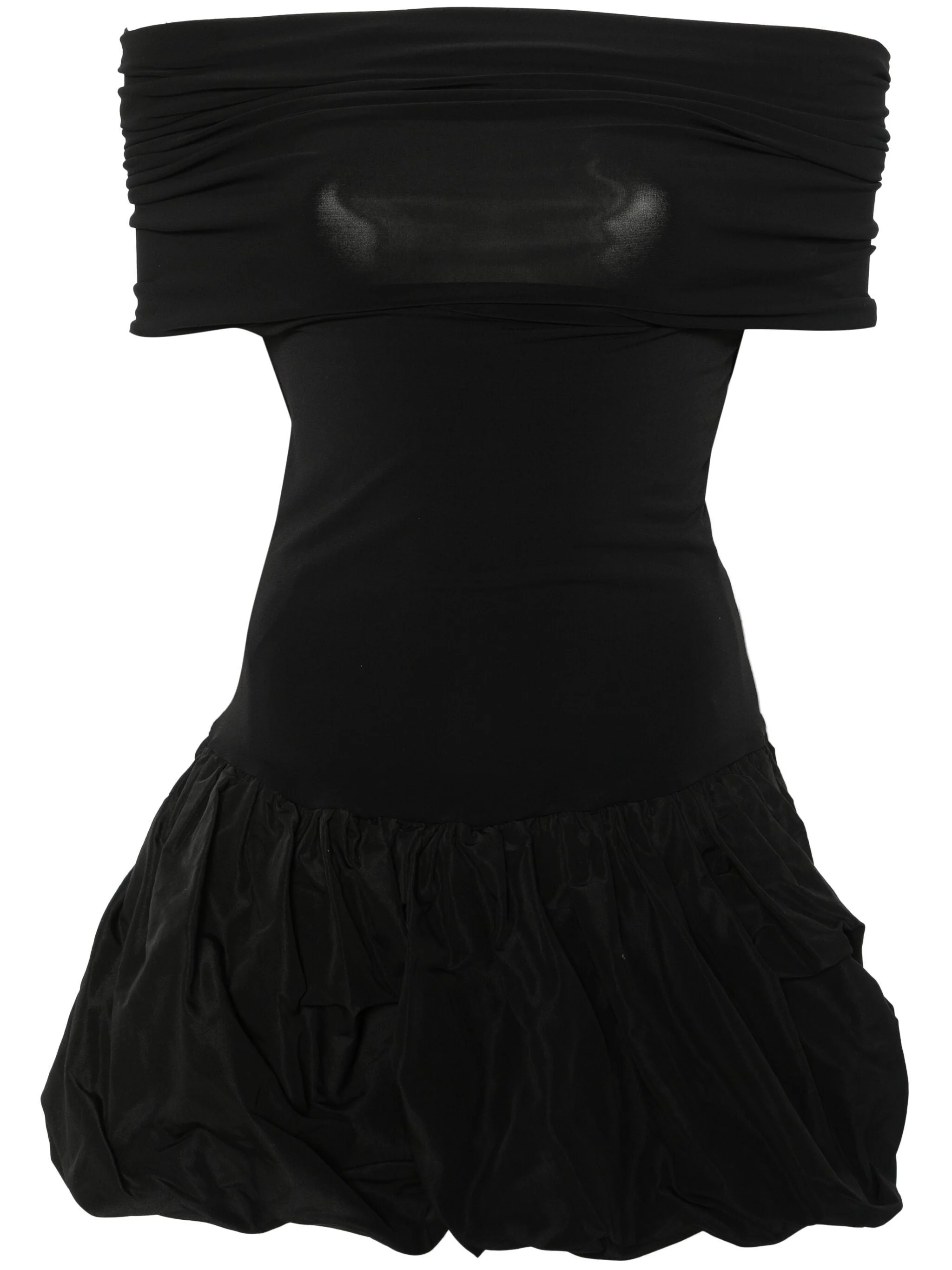 black inner shorts off-shoulder ruched bodice voluminous skirt - Color: BLACK - Made in: Ukraine - Designer Style ID: PS2505 BLACK Composition and care Viscose: 97.0%, Elastane: 3.0%