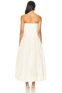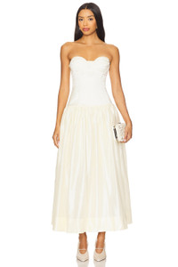 - 100% polyester - Dry clean only - Fully lined - Hidden back zip closure - Side seam pockets - Unpadded underwire cups with boned bodice - Midweight satin fabric - Neckline to hem measures approx 45.5" in length - Revolve Style No. ABER-WD70 - Manufacturer Style No. PF2508