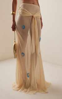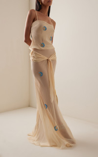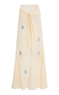Dorothy Beaded Tie-Front Silk Maxi Skirt ivory