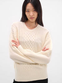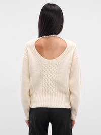 Ivory Wool Knit Cut-Out Sweater