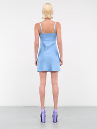 ANNA OCTOBER blue dress, bias cut, integrated bodice, topstitch detailing, detachable adjustable straps, sweetheart neckline, side zip closure, mini length, slim fit. 100% Viscose Standard Sizing Model is 5'9" wearing size XS. Bust: 32" Waist: 24" Hips: 34"