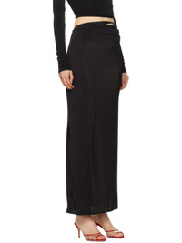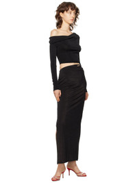 Stretch polyester jersey skirt. Elasticized scalloped trim throughout. · Adjustable tab-slot fastening at waistband · Draping and cutout at front · Slit at side seam · Unlined Supplier color: Black