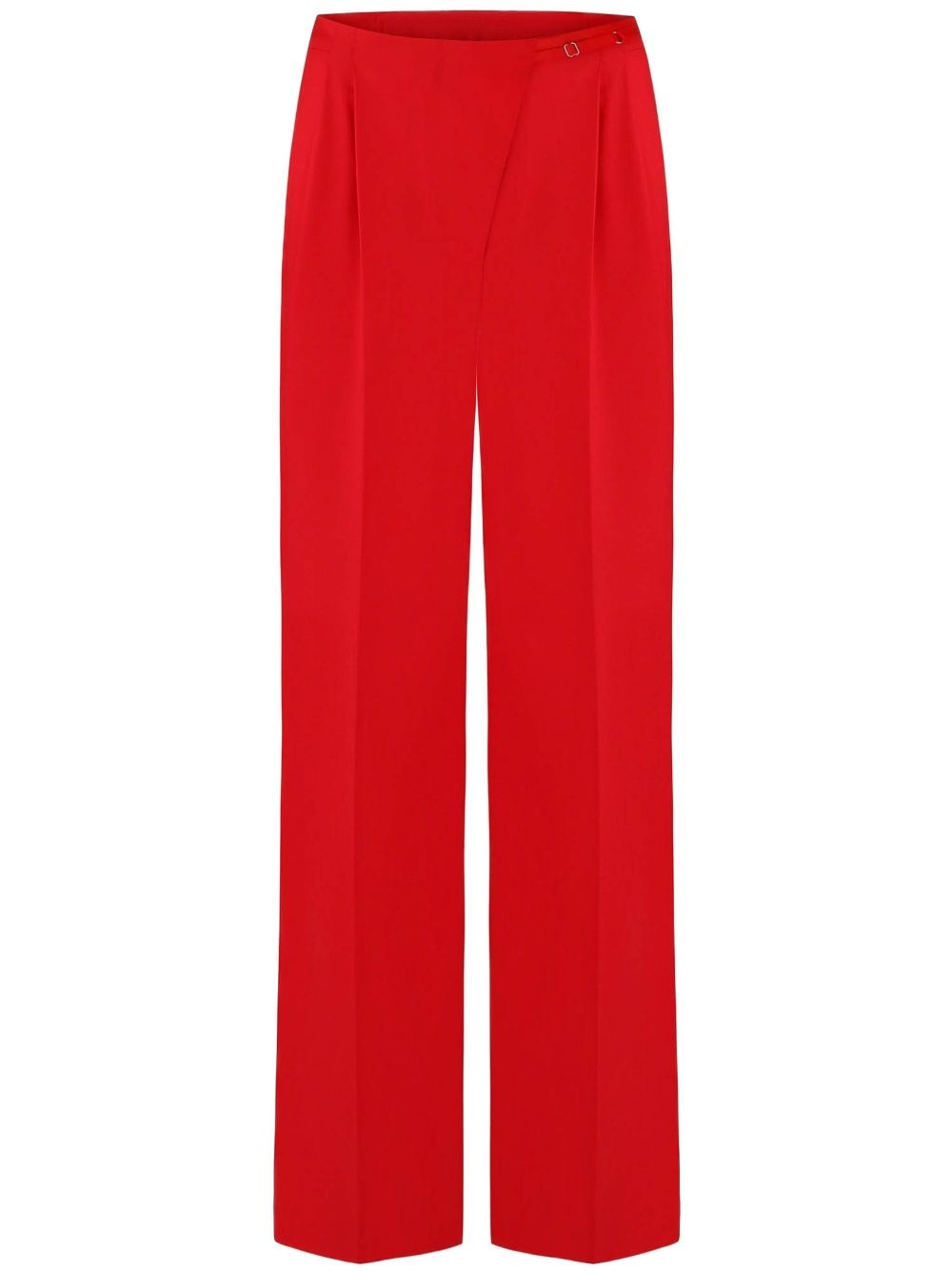 Noemie trousers Highlights - Bright red - Asymmetric concealed front fastening - Adjustable waist strap - Low-rise - Pleat detailing - Two side slash pockets - Two rear welt pockets Imported Composition Polyester 53%, Wool 43%, Elastane 4%