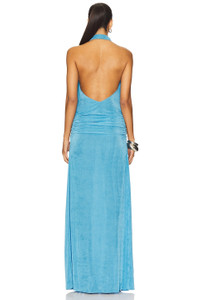 - 97% polyester 3% elastane - Dry clean - Unlined - Pull-on styling - Halterneck design - Cowl neckline - Slinky jersey fabric with subtly ruched bodice - Revolve Style No. ABER-WD74 - Manufacturer Style No. PF2527