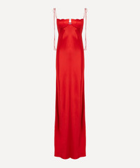 DETAILS Satin maxi skirt Tulip-shaped bodice Sheath silhouette Spaghetti straps Floor-length Model is 178cm/5'10"; Chest: 77cm; Waist: 65cm; Hip: 92cm and wears a size S COMPOSITION & CARE 57% Viscose; 43% Polyester Dry clean