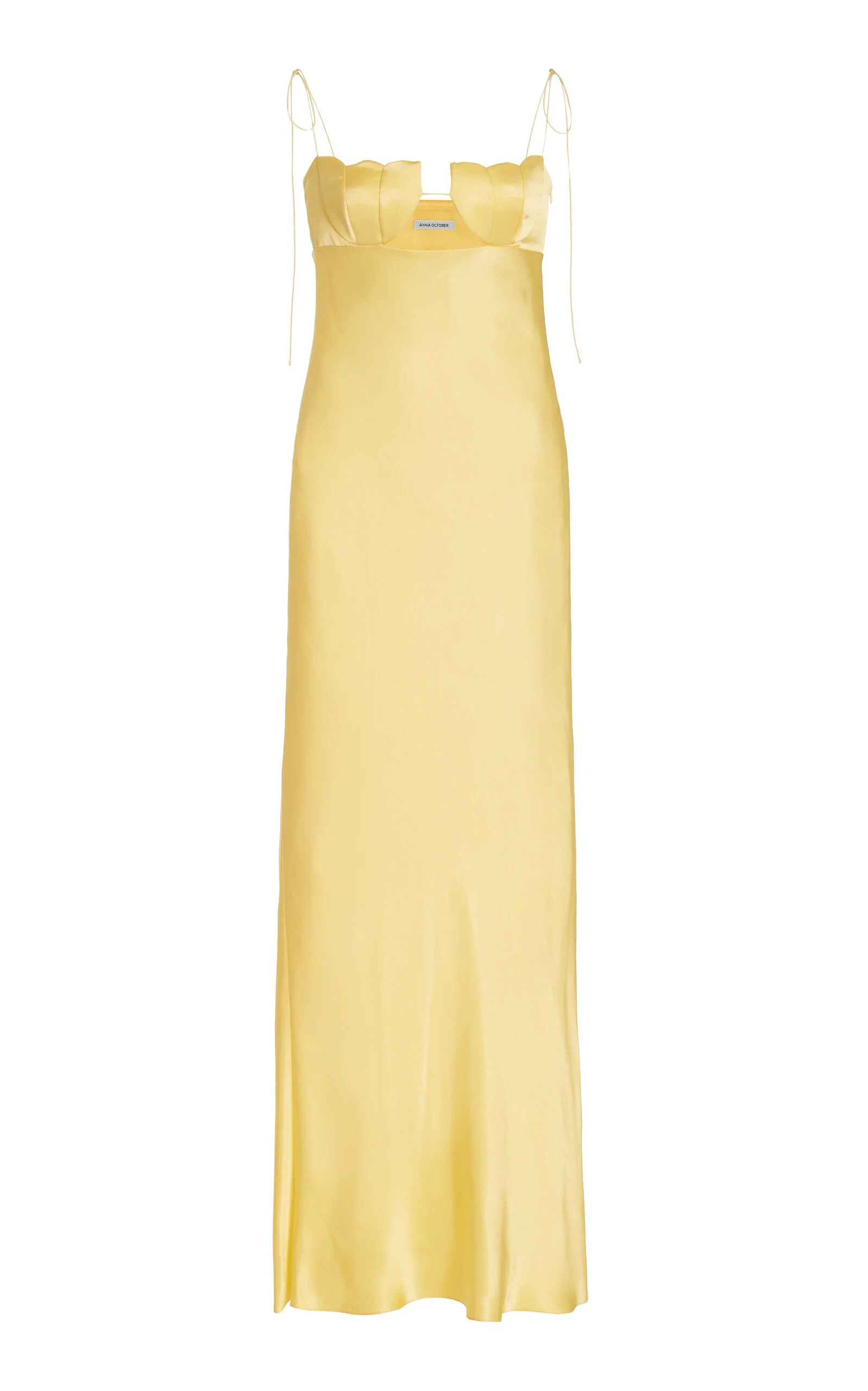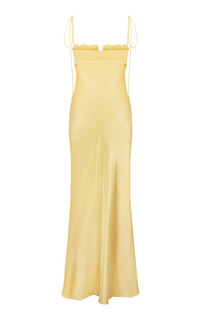 This season, the Ukrainian talent continues to build on her endlessly desirable take on everyday femininity. This maxi has a slip silhouette made from lustrous satin topped with tulip cups that suspend from delicate self-tying straps. PRODUCT DETAILS - Zip fastening along side - Composition: 70% viscose, 30% polyester - Dry clean - Imported SIZE & FIT - Model is wearing a size Small - Fits true to size, our fit specialist recommends taking your normal size - Designed for a slim fit