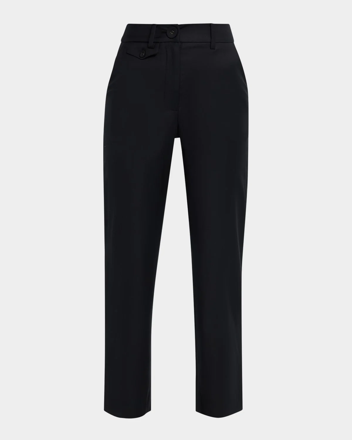 Anna Quan "Juliette" straightleg pants crafted from wool suiting Midrise; sits high on the hip Side slash pockets; back welt pocket Slim fit Cropped length Button/zip fly; belt loops Wool Dry clean Imported
