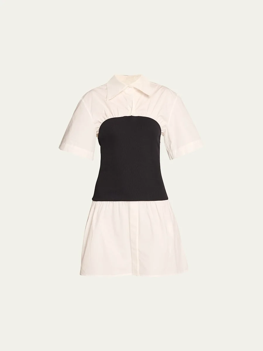 Anna Quan "Kali" mini dress featuring a contrasting fitted bodice Point collar Short sleeves; approx. 10"L Shirtdress silhouette Hem falls above the knee Side zip Polyester/organic cotton Lining: Polyester Dry clean Imported Model is 5'10"/177cm. Online Inquiries: BGS21_T5FRQ| Store Inquiries: #4712859