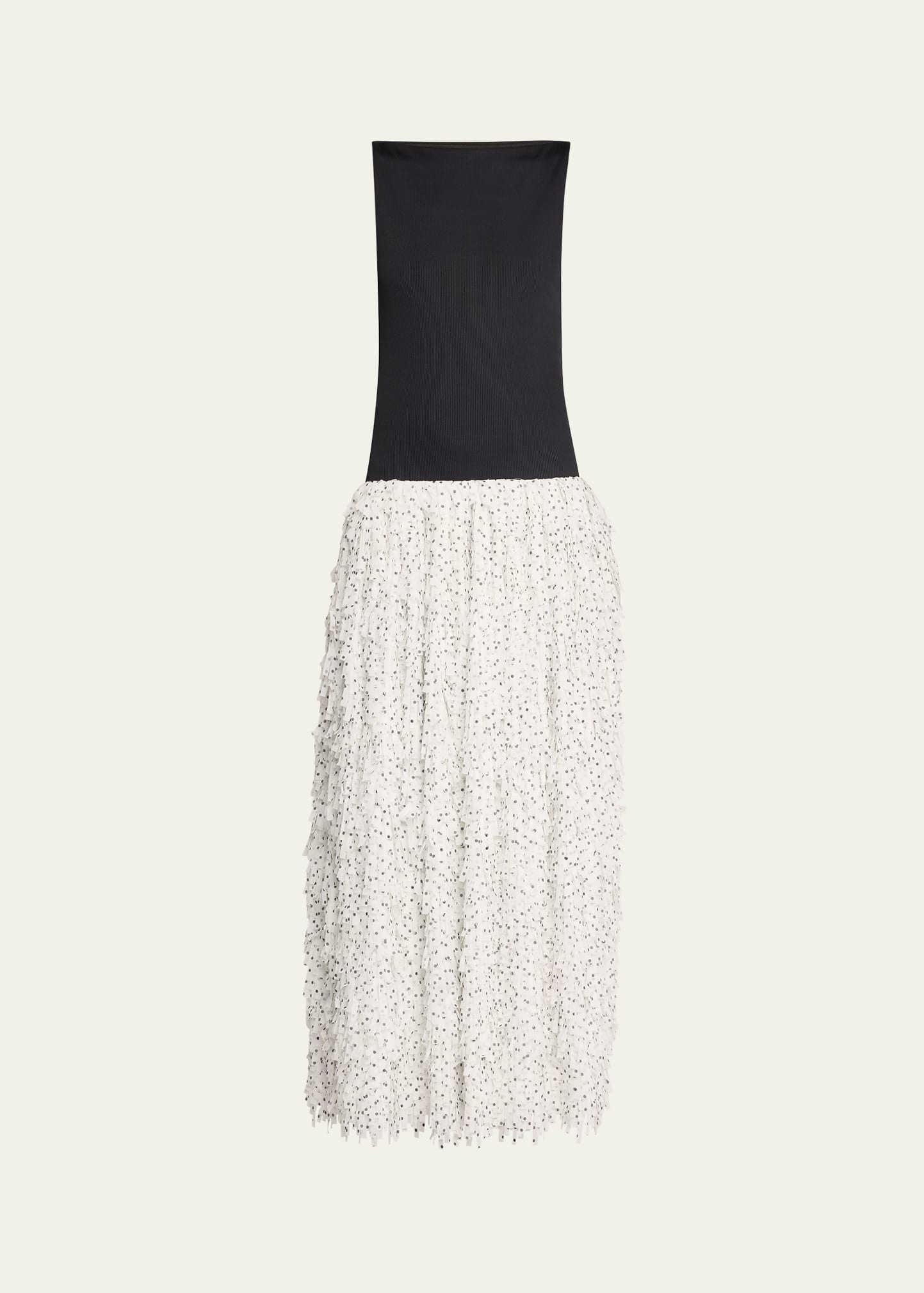 Anna Quan "Juni" midi dress featuring a hand-cut fringe skirt with polka dot detailing High neckline Sleeveless Drop-waist silhouette Hem falls below the knee Slipover style Polyester Lining: Polyester Dry clean Imported Model is 5'10"/177cm. Online Inquiries: BGS21_T66B9| Store Inquiries: #4912210