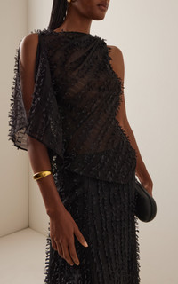 The Australian talent specializes in clean, elevated essentials in knit fabrications that hug every curve just-so. The 'Marybeth' top has an asymmetrically draped silhouette made from a textured fil coupe. Wear it with the matching skirt. PRODUCT DETAILS - Fall '25 - Slip on - Composition: 50% nylon, 50% tencel - Dry clean - Imported SIZE & FIT - Our model is wearing a size 6 - Model is 5'10" with a 30" bust, 24" waist, and 34" hip - Fits true to size, our fit specialist recommends taking your normal size