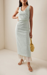 The Australian talent specializes in clean, elevated essentials in knit fabrications that hug every curve just-so. PRODUCT DETAILS - Resort '25 - Concealed zip fastening along back - Composition: 53% cotton, 46% polyester, 1% elastane; Contrast: 100% cotton; Lining: 100% polyester - Designer color: Pistachio - Dry clean - Imported SIZE & FIT - Our model is wearing a size UK 6 - Model is 5'10" with a 33" bust, 24" waist, and 36" hip - Fits true to size, our fit specialist recommends taking your normal size - Designed for a slim fit