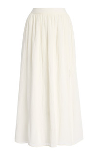 The Australian talent specializes in clean, elevated essentials in knit fabrications that hug every curve just-so. Cut from a semi-sheer gauzy cotton with a textured finish, the 'Oriana' skirt has a double-layered construction with a gathered waist and a split side hem. Pair it with the matching top. PRODUCT DETAILS - Spring '25 - Zip fastening along back - Composition: 100% cotton - Designer color: Shell - Dry clean - Imported SIZE & FIT - Our model is wearing a size AU 6 - Model is 5'11" with a 31.5" bust, 23" waist, and 35" hip - Designed for a slim fit