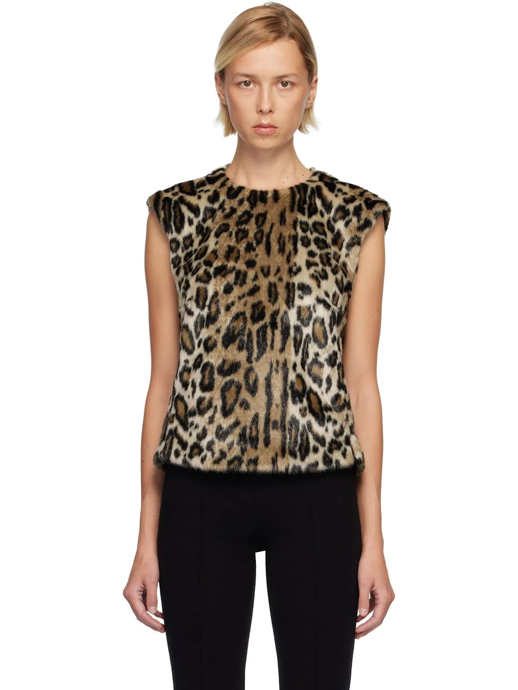 Beige & Black Leopard Sleeveless Faux-Fur Top