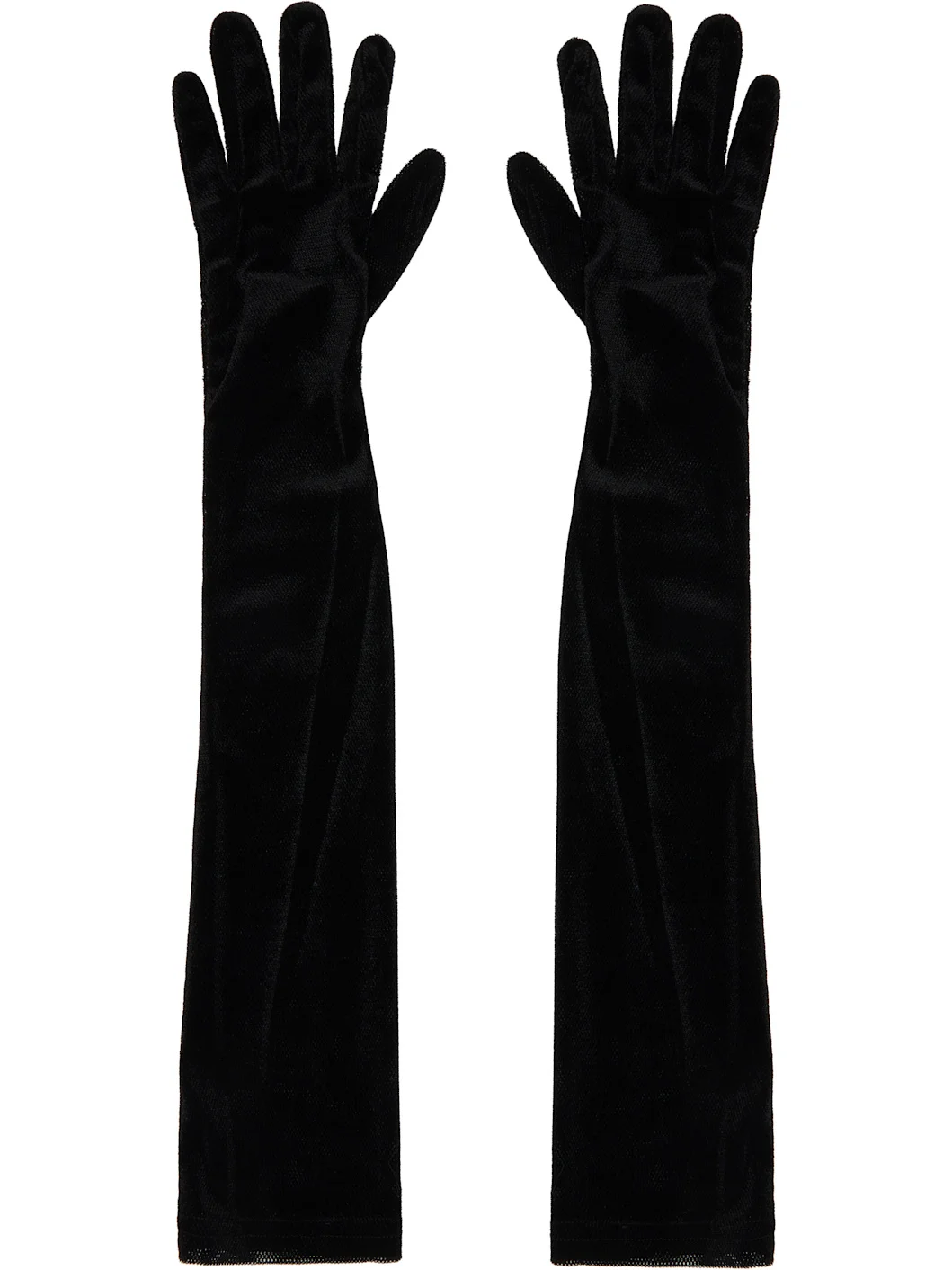 Pair of flocked mesh gloves. · Semi-sheer · Elasticized cuffs Supplier color: Black 100% polyester. Made in United States 252894F012000