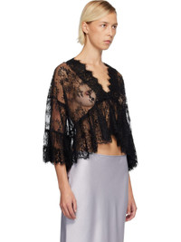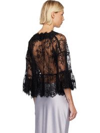 Sheer lace blouse. · Jacquard floral pattern and dots throughout · Raw scalloped edge at V-neck, hem, and cuffs · Gathering at waist and cuffs · Dropped shoulders Supplier color: Black 100% nylon. Made in United States 252894F107000