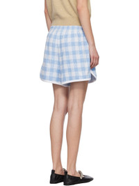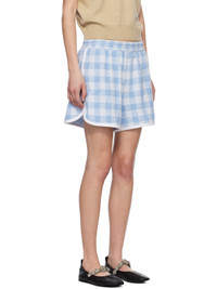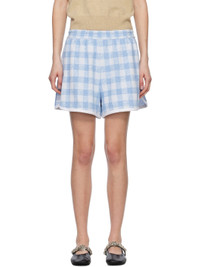 Polyester- and cotton-blend terrycloth shorts. Check pattern throughout. · Elasticized waistband · Vented cuffs Supplier color: Baby blue 45% polyester, 34% cotton, 21% nylon. Made in United States 251894F088004
