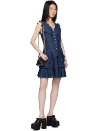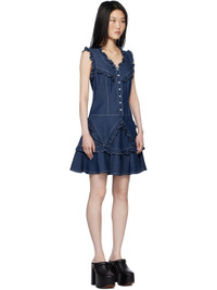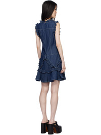 Non-stretch denim midi dress. Ruffled trim and gussets throughout. · Scoop neck · Press-stud placket · Gussets at flared hem · Zip closure at back · Contrast stitching in white Supplier color: Denim 100% cotton. Made in United States 251894F054002