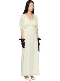 Semi-sheer polyester broderie anglaise maxi dress. Lace trim throughout. · Scoop neck · Puff sleeves · Concealed zip closure at back collar · Partial crepe lining Supplier color: Vanilla Body: 100% polyester. Lining: 100% polyester. Made in United States 251894F055000