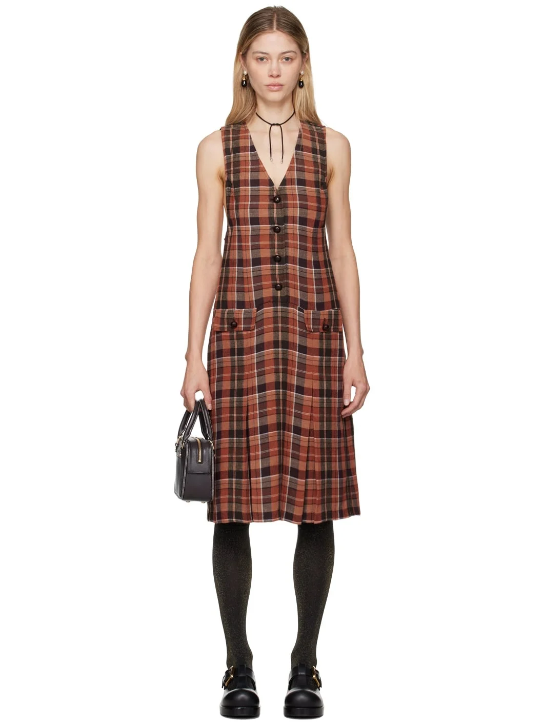 Viscose- and wool-blend flannel dress. Plaid pattern throughout. · Y-neck · Button closure · Mock flap pockets · Inverted box pleats at front hem · Full satin lining Supplier color: Marmalade multi Body: 85% viscose, 15% wool. Lining: 100% polyester. Made in United States 242894F054006
