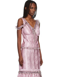 Crushed satin tank top. · Ruffles at V-neck, shoulders, and hem · Bow at chest · Off-shoulder strap at single shoulder · Zip closure at side seam Supplier color: Peony 100% polyester. Made in United States 261894F111004