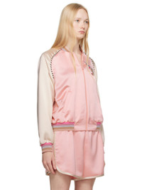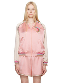 Pink Satin Embroidered Souvenir Bomber Jacket