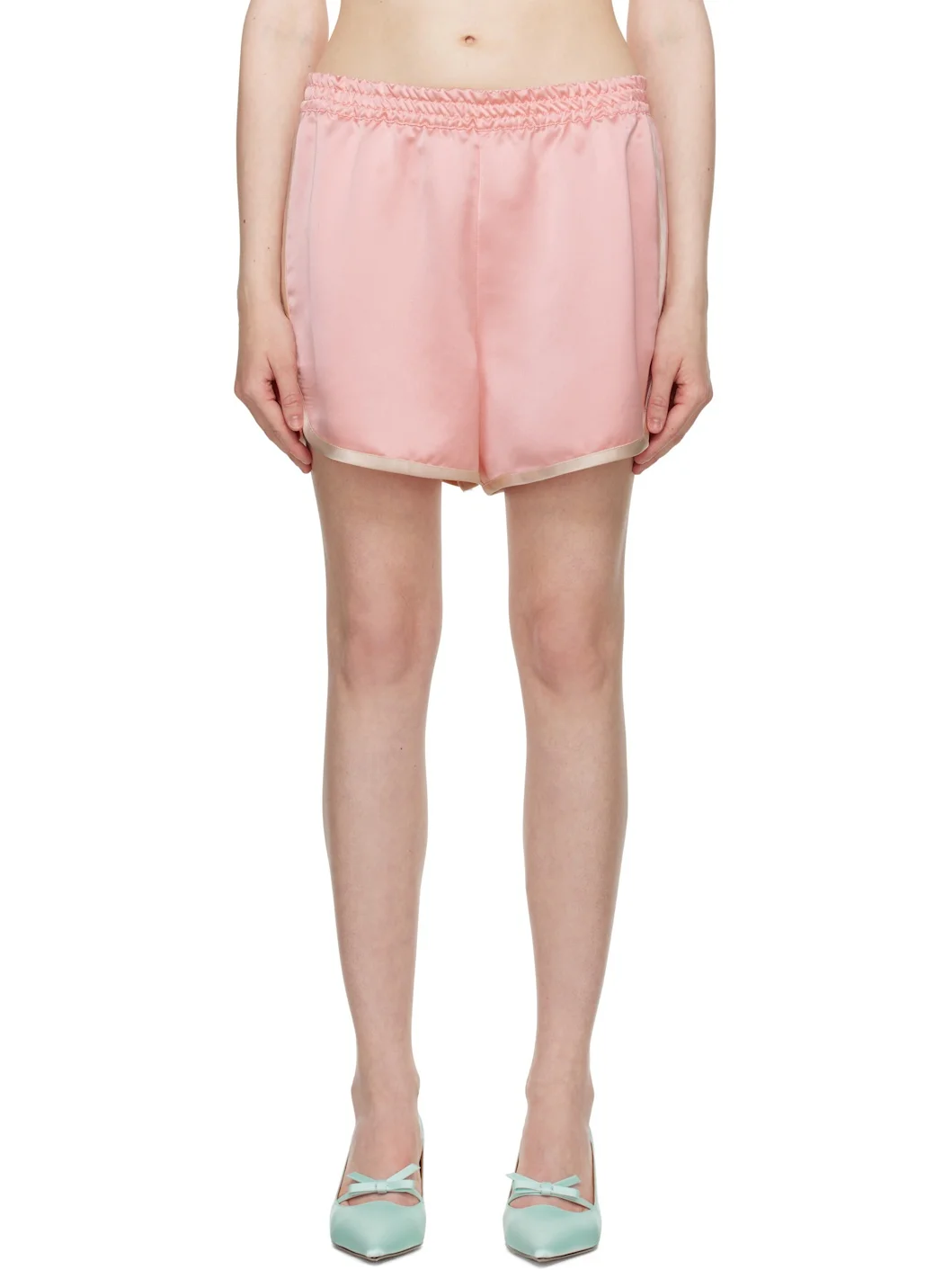 Relaxed-fit polyester satin shorts. · Elasticized waistband · Piping at cuffs and outseams Supplier color: Pastel pink 100% polyester. Made in United States 251894F088002