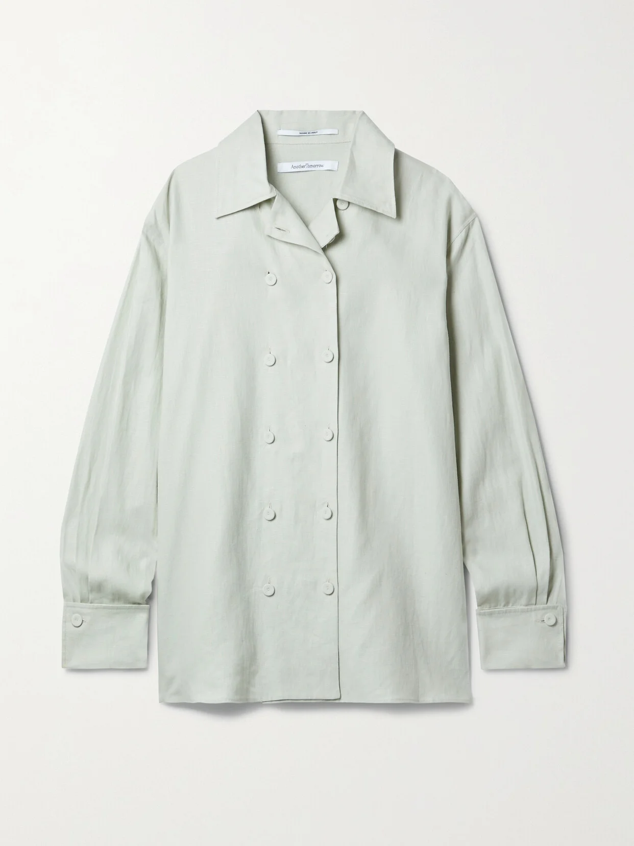 Another Tomorrow's shirt fastens with two rows of covered buttons, marking it out in the most elegant way from more classic styles we know and love. Made from mint certified linen, it has equally distinctive cuffs and works beautifully with the brand's matching shorts. This product was created using Considered Materials. Find out more about NET SUSTAIN here.