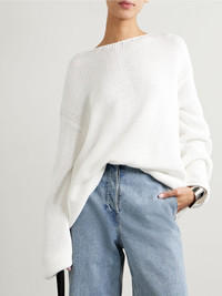 Another Tomorrow's sweater has a bateau neckline and relaxed fit emphasized by dropped shoulders. It's knitted from certified organic cotton and has a subtle, open construction that calls for tonal underpinnings. Half-tuck yours into jeans or tailoring. This product was created using Considered Materials. Find out more about NET SUSTAIN here. Details & Care - White organic cotton - Slips on - 100% organic cotton