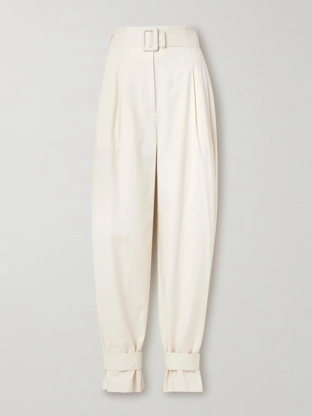 Belted Lyocell And Organic Cotton-blend Tapered Pants