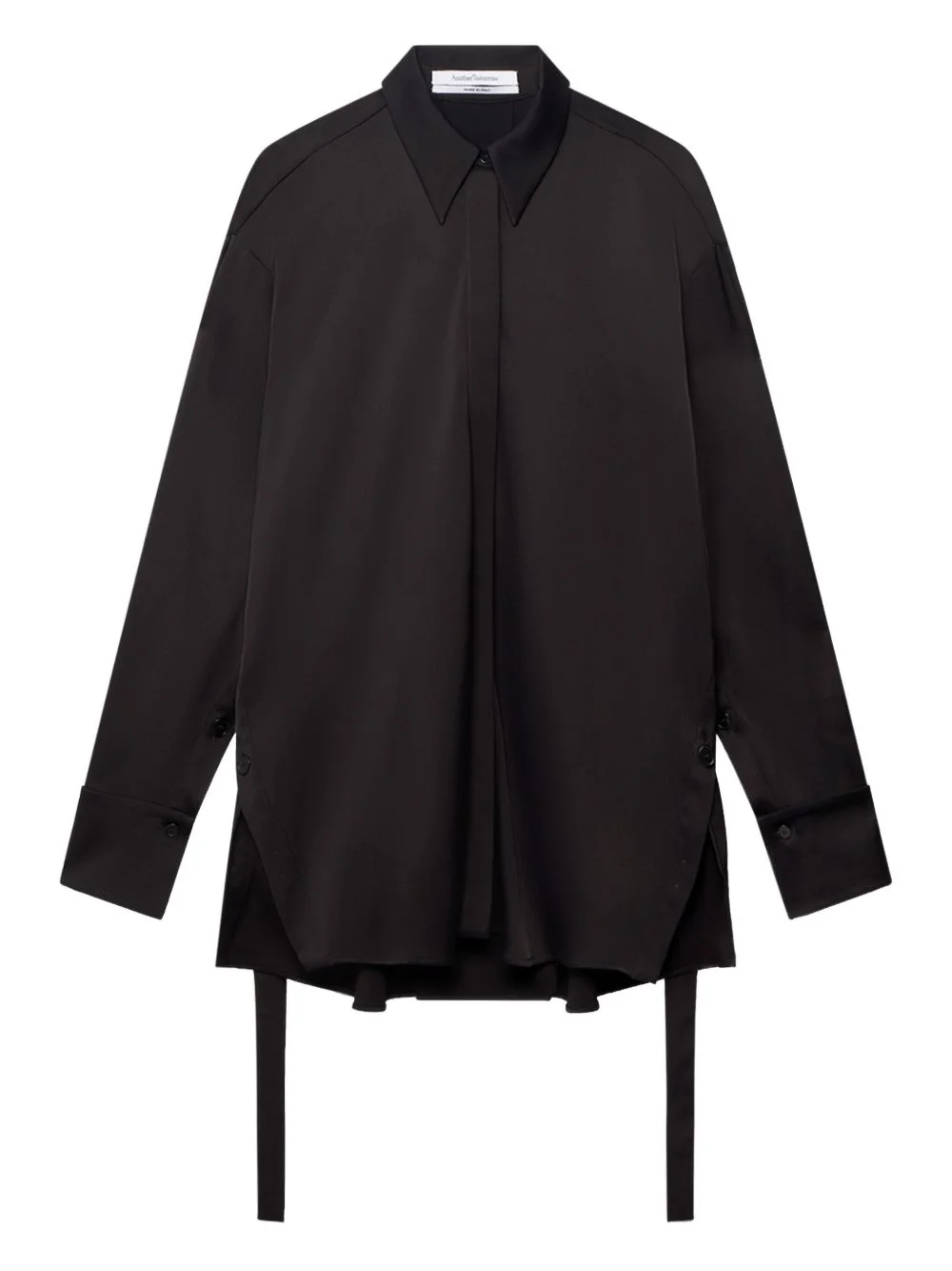 button-detail shirt Highlights - Black - Concealed front button fastening - Adjustable strap to the rear - Buttoned cuffs - Long sleeves Made in Italy Composition FSC Viscose 98%, Elastane 2%