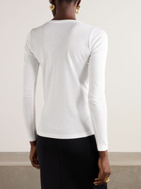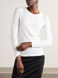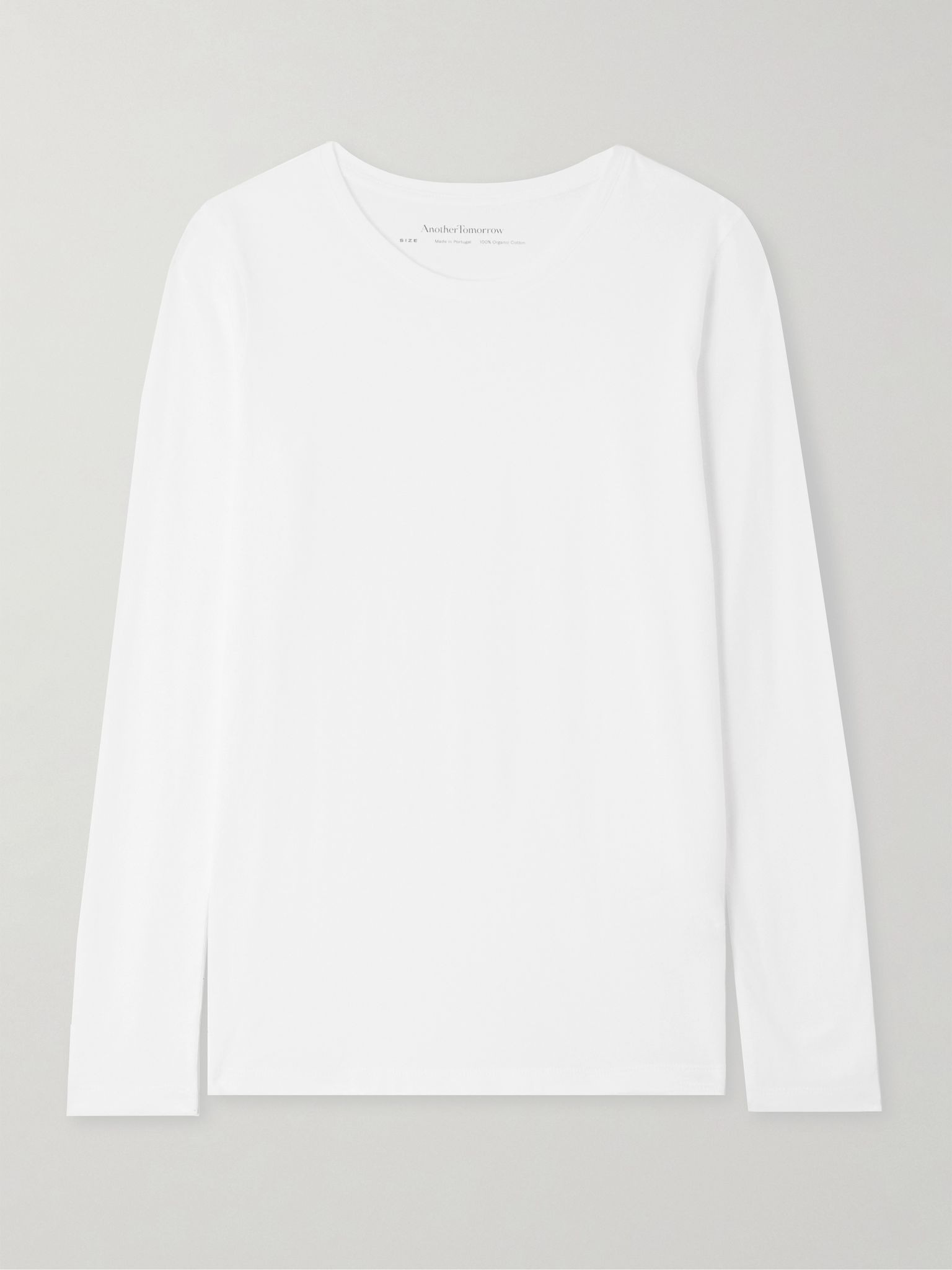 You'll never run out of ways to style Another Tomorrow's classic T-shirt. Made from white organic cotton-jersey, it has a slim fit with a crewneck and long sleeves. Wear yours with jeans or layered under one of the label's jackets. Size & Fit - Fits true to size, take your normal size - Cut for a slim fit - Lightweight, slightly stretchy fabric - Model is 177cm/ 5'10" and is wearing a size Small Model measurements: - Bust: 80cm/ 31.5" - Waist: 60cm/ 23.5" - Hip: 89cm/ 35" Details & Care - White organic cotton-jersey - Slip on - 100% organic cotton - Machine wash