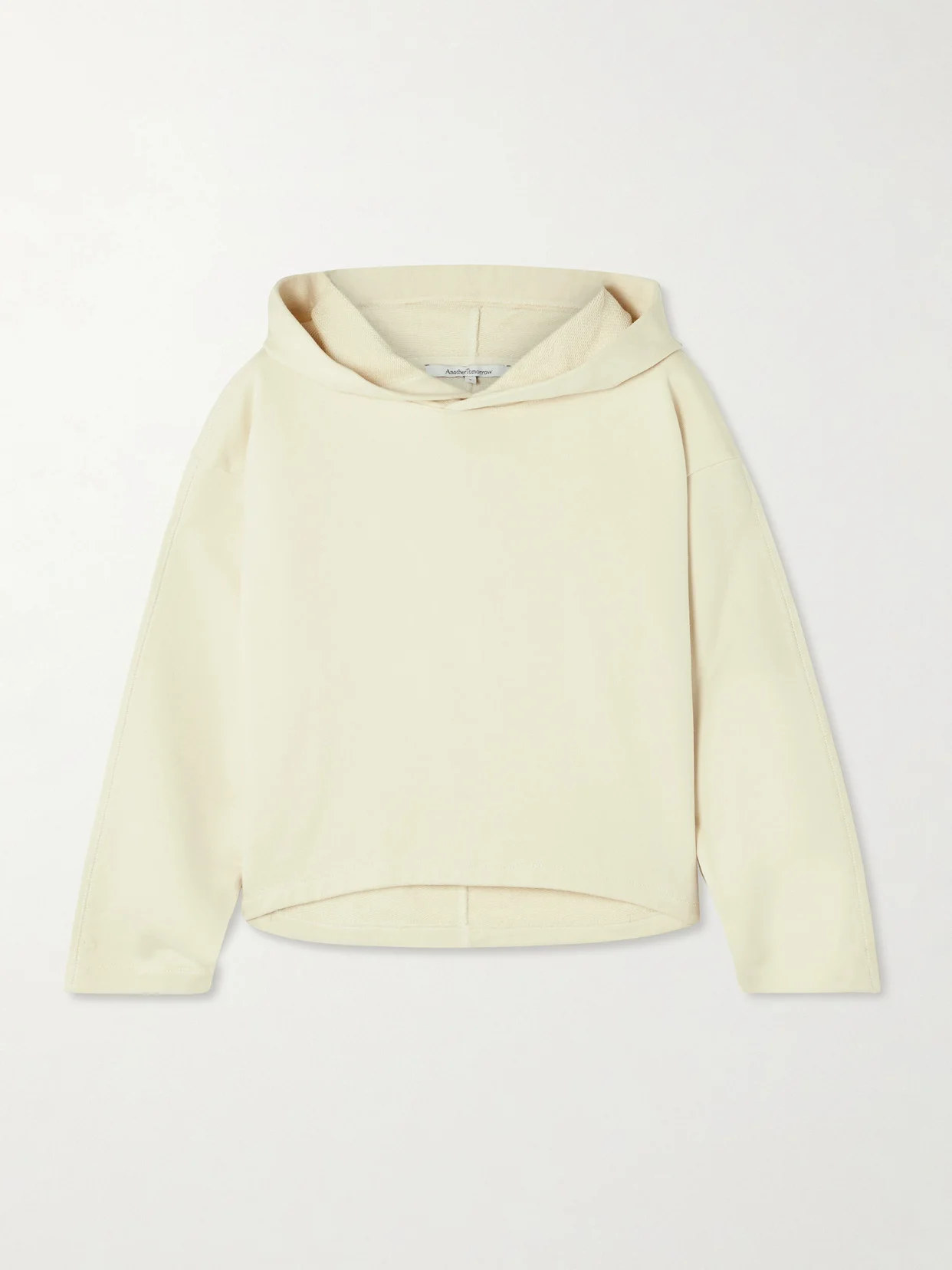 Another Tomorrow's hoodie is perfect for well-earned casual days. It's cut from certified organic cotton-blend jersey with a plush handle and has a relaxed, cropped profile. Complete the set with the matching pants in our edit. Lower-Impact Materials. This product is made using at least 50% lower-impact materials or ingredients. Find out more about our NET SUSTAIN criteria here.