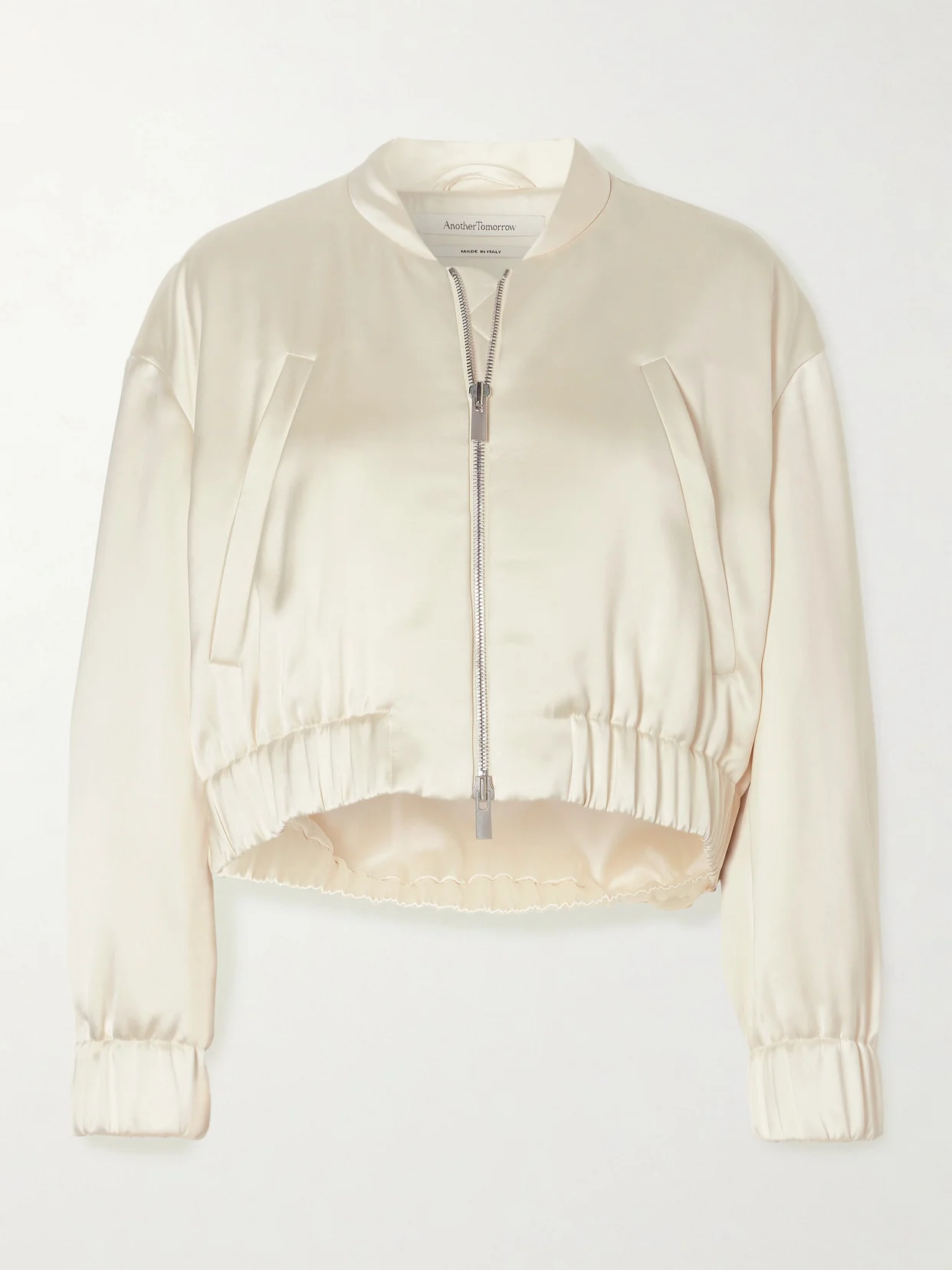 EXCLUSIVE AT NET-A-PORTER. Another Tomorrow's jacket makes a cool addition to any capsule closet. Cut from satin, it's cropped with dropped shoulders and has a quilted, padded lining to relax its shape. The viscose is sourced from certified forests for responsible stewardship. Lower-Impact Materials. This product is made using at least 50% lower-impact materials or ingredients. Find out more about our NET SUSTAIN criteria here.