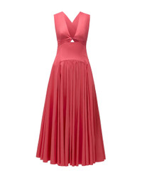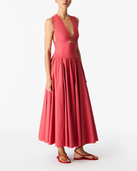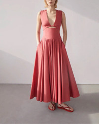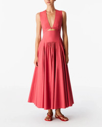 The functional wrapping at the torso of this dress creates a cutout at the center front, which can be adjusted. The fullness of the skirt is enhanced by curved seaming details at the waist. This dress closes with an invisible zipper at the center back. Only about 1.4% of all cotton grown globally is organic. We support organic agriculture because it protects our land’s natural ecosystems by banning harmful chemicals, synthetic pesticides, and GMO seeds. - Model is 5'10 and wearing a size 40 (US4). - 100% Cotton - Center Back Invisible Zipper - Functional Wrapping Detail At Front With Adjustible Cutout - Full Skirt With Curved Seaming Details - Ankle Length - Dry Clean Sparingly