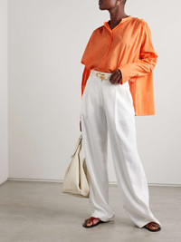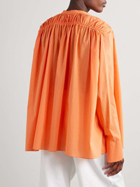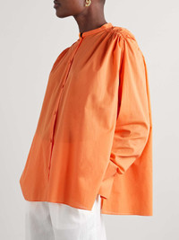 EDITORS'NOTES Another Tomorrow's shirt is cut from organic cotton-voile - the soft, lightweight fabric is grown without the use of synthetic fertilizers, so it's kinder to the planet too. It has a relaxed shape and is gathered along the shoulders and back yoke. Style yours with everything from jeans to tailored shorts. SIZE & FIT - Fits true to size, take your normal size - Designed for a relaxed fit - Lightweight, non-stretchy fabric - Model is wearing an IT 40 DETAILS & CARE - Orange cotton-voile - Slips on - 100% organic cotton