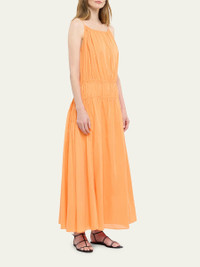 Another Tomorrow shirred dress crafted in a crisp organic cotton poplin Approx. 57"L from shoulder to hem High neckline; scoop back Sleeveless Falls below the ankle A-line silhouette Slipover style Organic cotton Dry clean Made in Italy Online Inquiries: BGS21_B9ZNY| Store Inquiries: #5018029