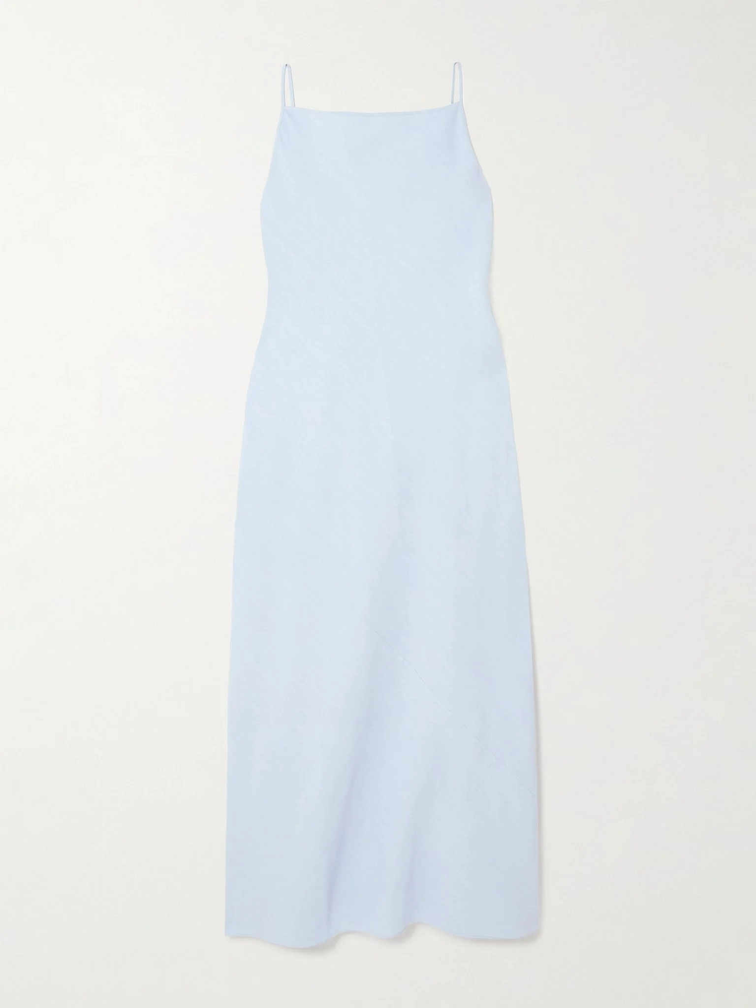 EXCLUSIVE AT NET-A-PORTER. Another Tomorrow's dress has a minimalist, '90s-inspired vibe. Made from lightweight hemp-blend, it has a square neckline and slightly loose fit. Wear yours with slides or mules, depending on the occasion. Size & Fit - Fits true to size, take your normal size - Designed for a slightly loose fit - Lightweight, non-stretchy fabric - S/M/L sizing Details & Care - Light-blue hemp-blend - Slips on - 58% hemp, 39% viscose, 3% elastane - Dry clean - Designer color: French Blue