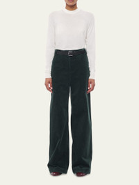 Another Tomorrow soft corduroy pants Approx. measurements: 11.8" rise; 34.6" inseam; 43" outseam Full length Mid rise sits high on hip Wide legs Side pockets; back patch pocket Button/zip fly; belt loops Cotton Dry clean Made in Italy Model is 5'10"/177cm. Online Inquiries: BGS21_B9K80| Store Inquiries: #4890013