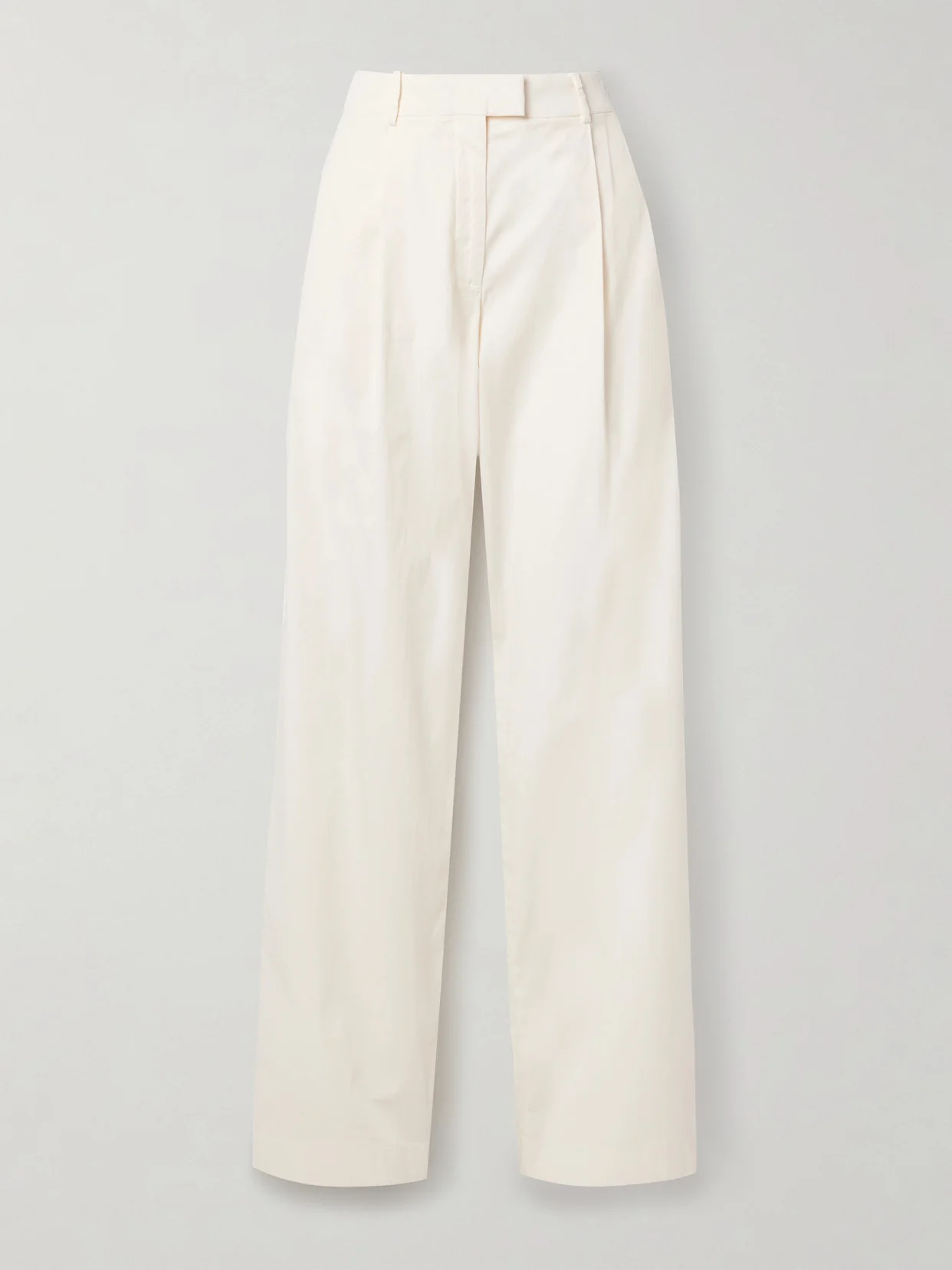 Pleated Organic Cotton-blend Poplin Wide-leg Pants
