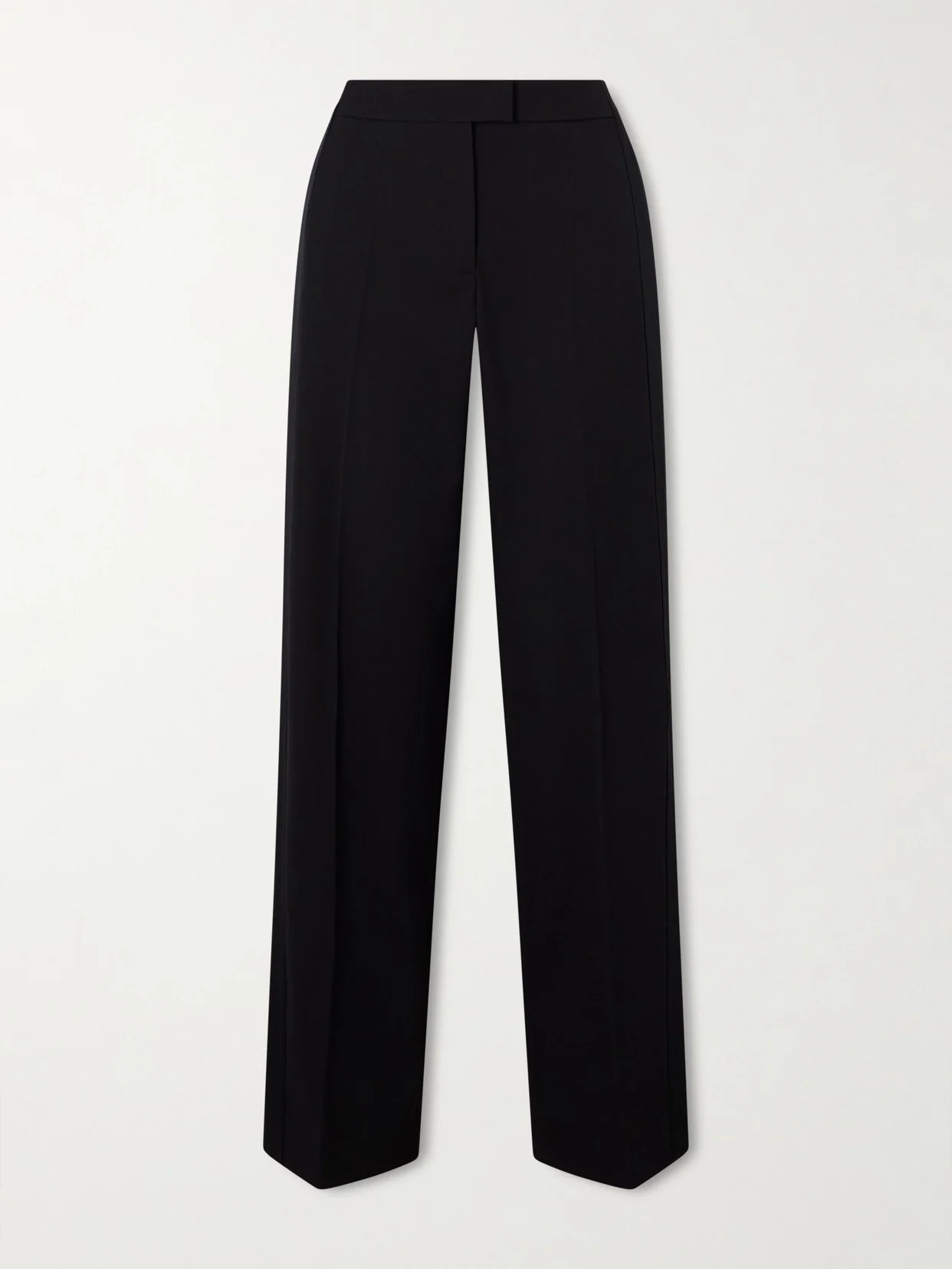 Pleated Satin-trimmed Wool-blend Twill Wide-leg Pants