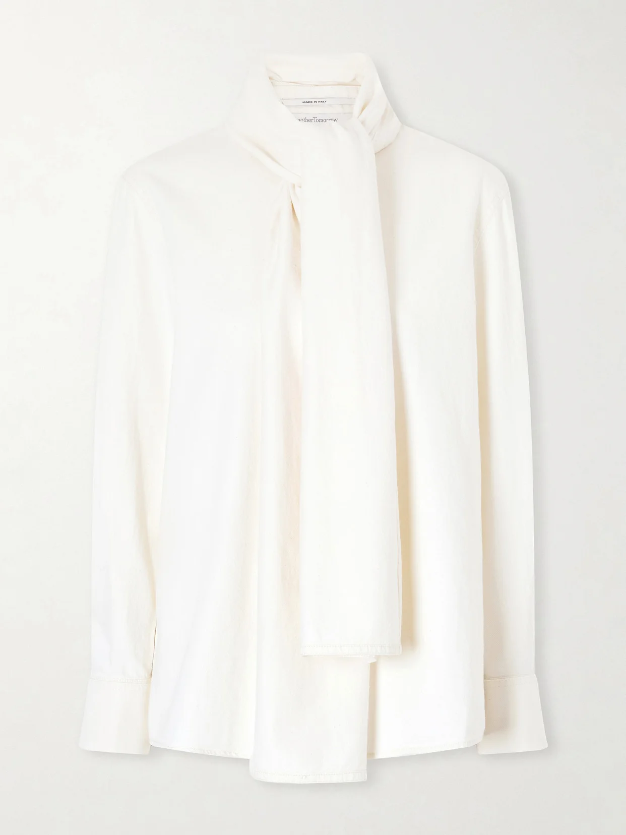 Another Tomorrow's blouse is made from cotton-chambray for a fluid drape - the choice of fabric gives structure to the pussy-bow ties. Versatile in both cut and color, it can be styled in many ways. Lower-Impact Materials. This product is made using at least 50% lower-impact materials or ingredients. Find out more about our NET SUSTAIN criteria here.