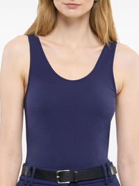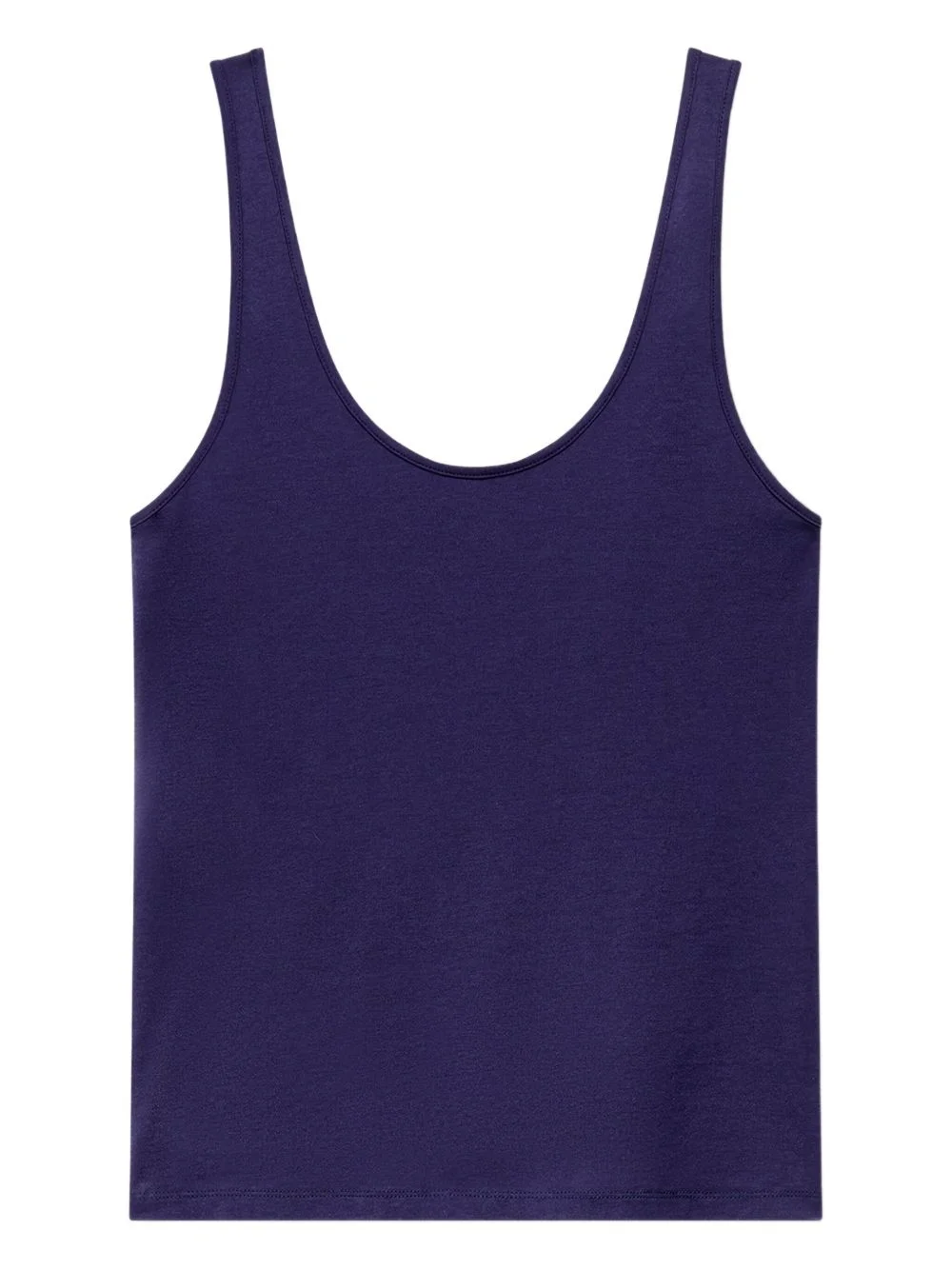 scoop-neck tank top Highlights - Indigo blue - Scoop back - Sleeveless - Straight hem Imported Composition Organic Cotton 47%, FSC Lyocell 47%, Spandex/Elastane 6%