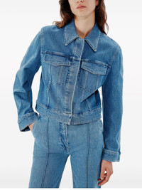 seam-detail cropped jacket Highlights - Light blue - Organic cotton blend - Denim - Stretch-design - Seam detailing - Classic collar - Concealed front fastening - Two chest patch pockets - Long sleeves - Buttoned cuffs - Button-fastening straps - Cropped Made in Italy Composition Organic Cotton 98%, Elastane 2%