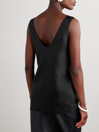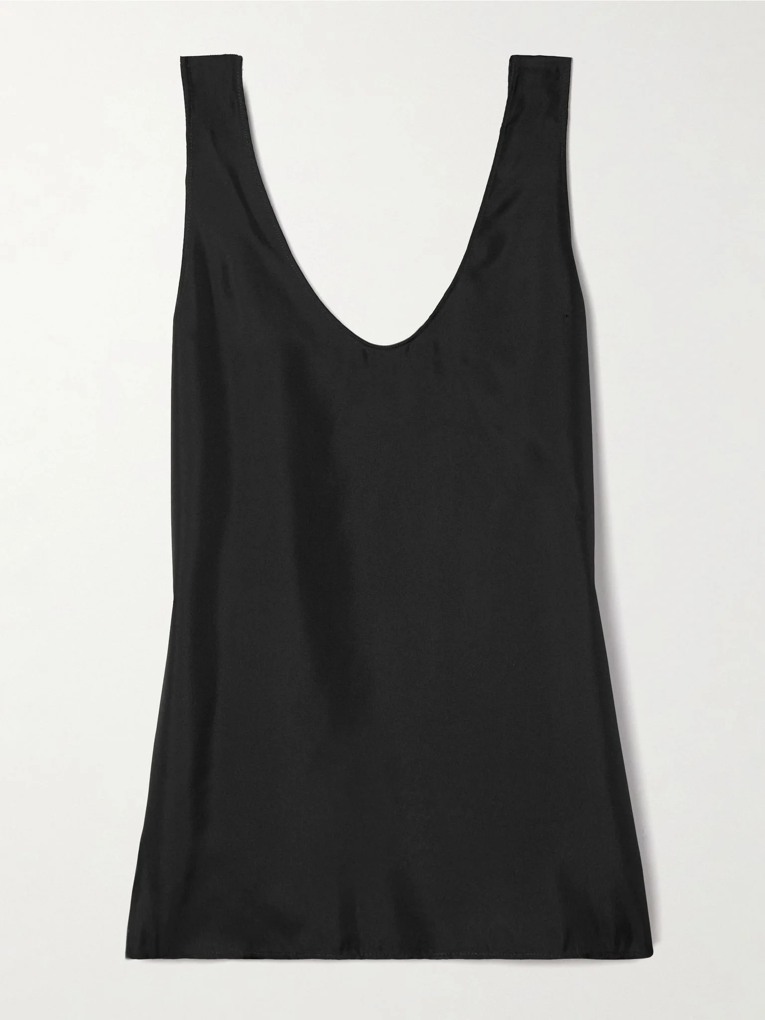 Another Tomorrow's tank serves as the perfect starting point to build looks around. It's cut from fluid silk-twill that drapes loosely over your frame and has a scooped neckline. Style it solo with jeans or layered beneath a blazer. Size & Fit - Fits true to size, take your normal size - Designed for a loose fit - Lightweight, non-stretchy fabric - Model is 175cm/ 5'9" and is wearing a size Small Model measurements: - Bust: 79cm/ 31" - Waist: 61cm/ 24" - Hip: 89cm/ 35" Details & Care - Black silk-twill - Slips on - 100% silk - Dry clean