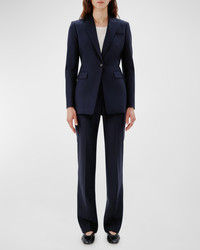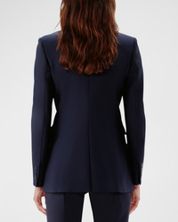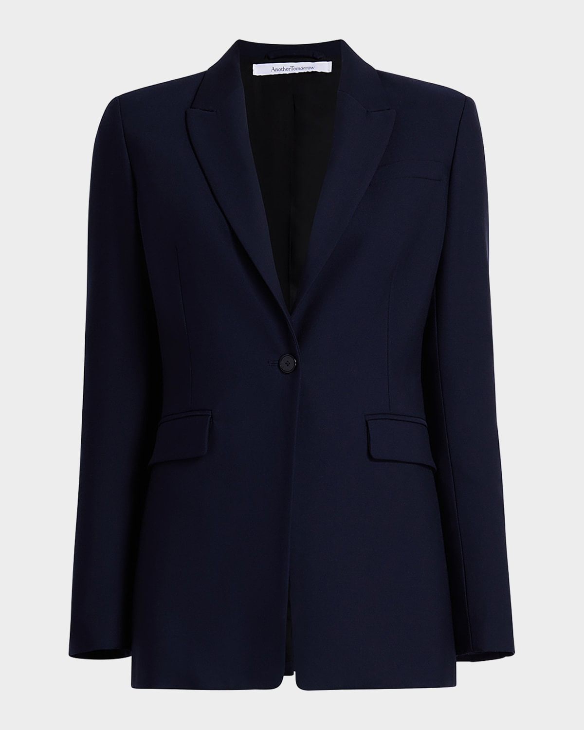 - Another Tomorrow single button blazer jacket with a nipped waist and merino wool finish - Approx. 29.4" from shoulder to hem - Peak lapel collar - Long sleeves - Side flap pockets; front welt pocket - Mid-length - Relaxed fit - Seasonless custom-made merino wool - Lining: Cupro - Made in Italy - Fashioned for change: responsible manufacturing. Find out more - here