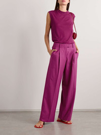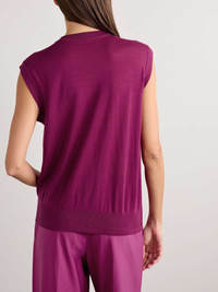 EDITORS'NOTES Another Tomorrow's tank is made from wool that's so light and breezy, the brand describes it as featherweight. It has subtle cap sleeves and a slightly loose shape tempered by a wide, fitted band at the hem. Wear yours with the coordinating pants in the same rich magenta hue. SIZE & FIT Model measurements: - Fits true to size, take your normal size - Designed for a slightly loose fit - Lightweight knit - Model is 180cm/ 5'11" and is wearing a size Small - Bust: 81cm/ 32” - Waist: 62cm/ 24.5” - Hip: 88cm/ 34.5” DETAILS & CARE - Magenta wool - Slips on - 100% wool