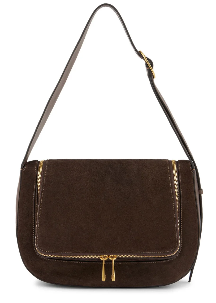 Info & Care Anya Hindmarch suede and leather shoulder bag Adjustable shoulder strap, logo embellishment at back, designer-engraved hardware, metallic-stamped labelled internal sections, internal zip-fastening pocket, two internal card slots, two internal slip pockets Two-way zip fastening at flap front Size & Fit Width: 11 inches/ 28cm Height: 7.5 inches/ 19cm Depth: 4 inches/ 10cm Min. shoulder strap drop: 11 inches/ 28cm Max. shoulder strap drop: 18 inches/ 46cm