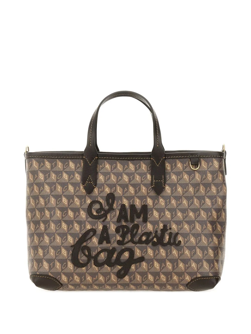 applique pattern tote bag Highlights - Brown - All-over pattern - Applique detailing - Top handle - Shoulder strap - Gold-tone hardware Imported Composition Outer: Calf Leather 100%, Canvas 100%
